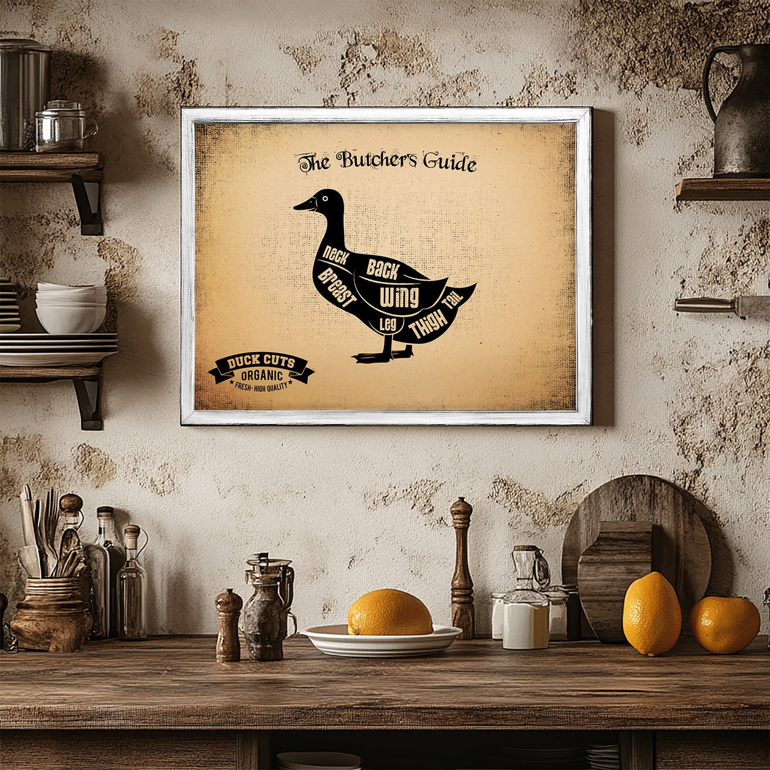 Duck Cuts Butcher Guide Wood Sign Framed Wall Art