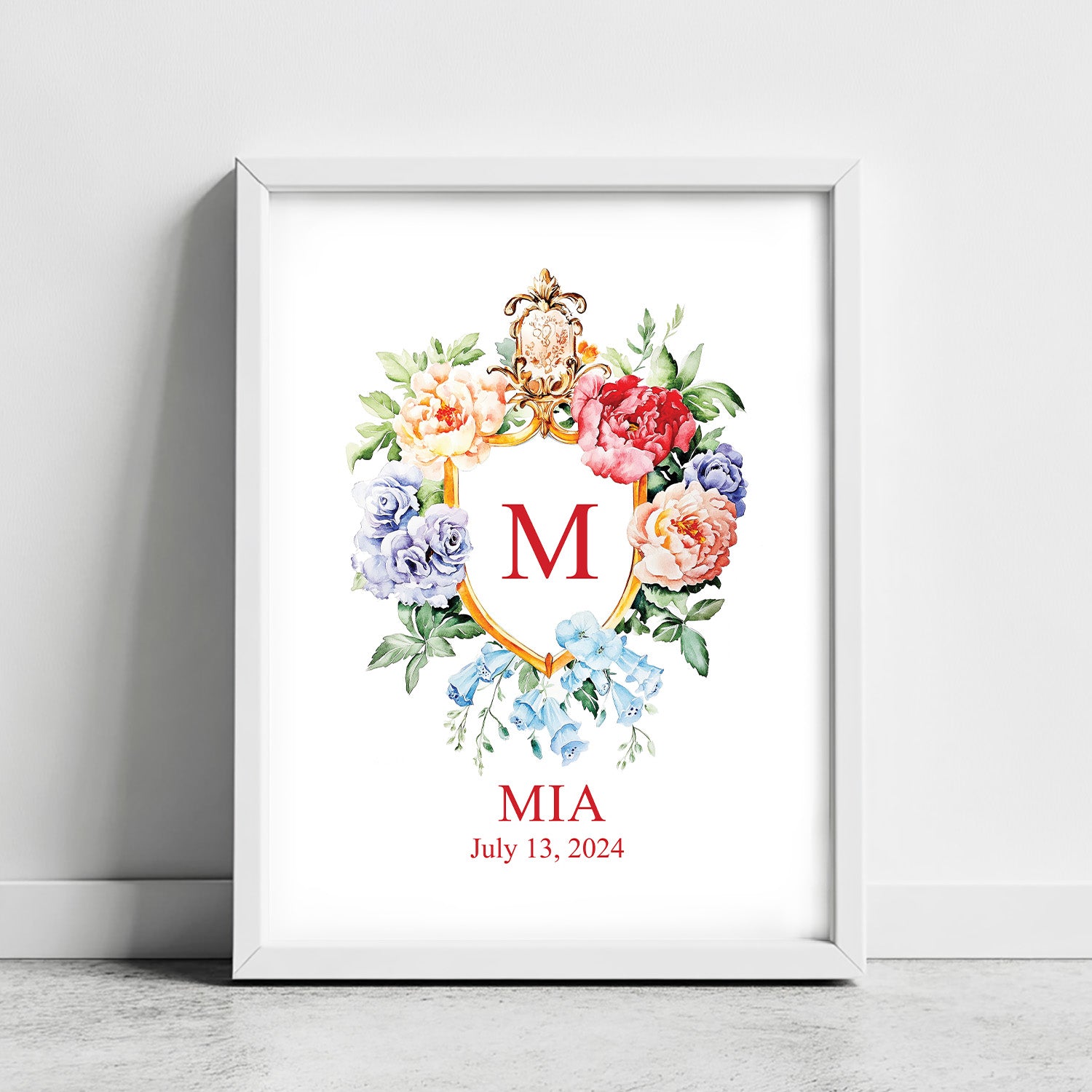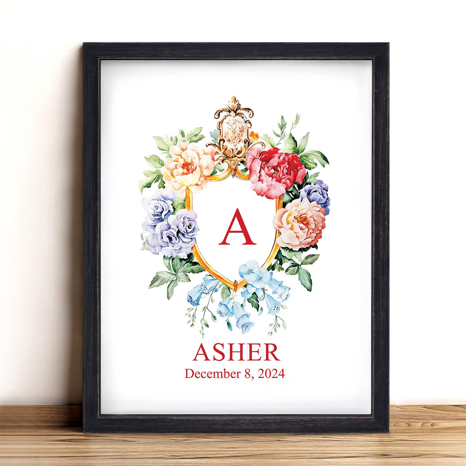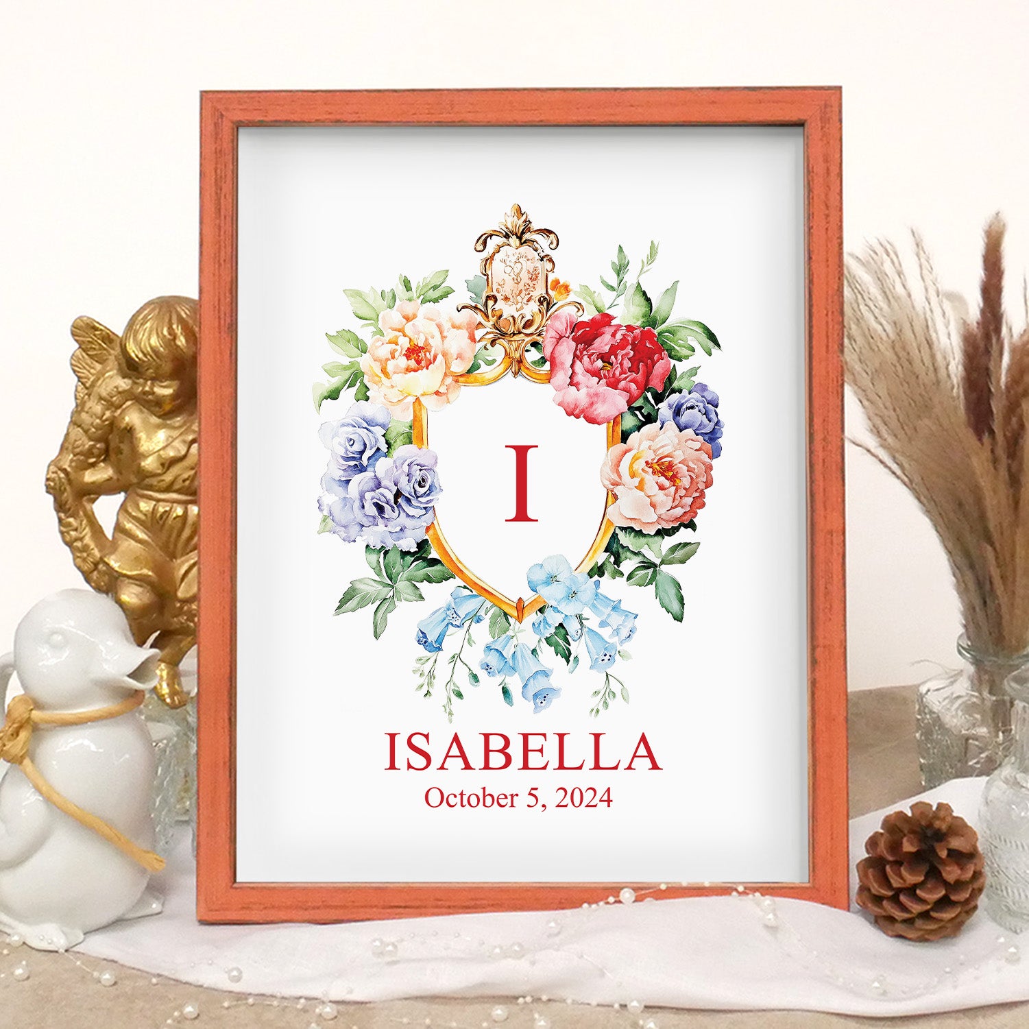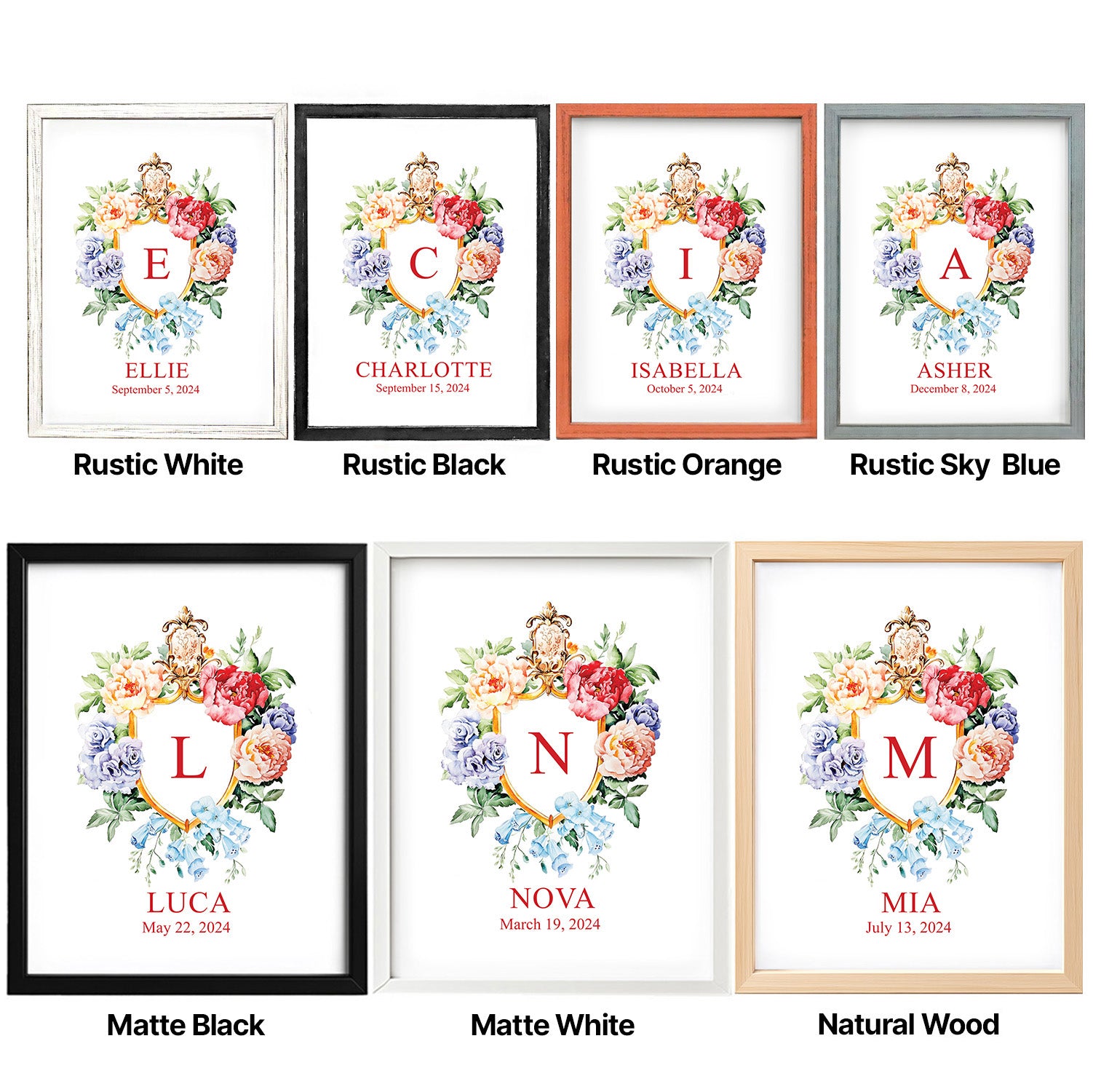 Floral Custom Name Sign Framed Wall Art
