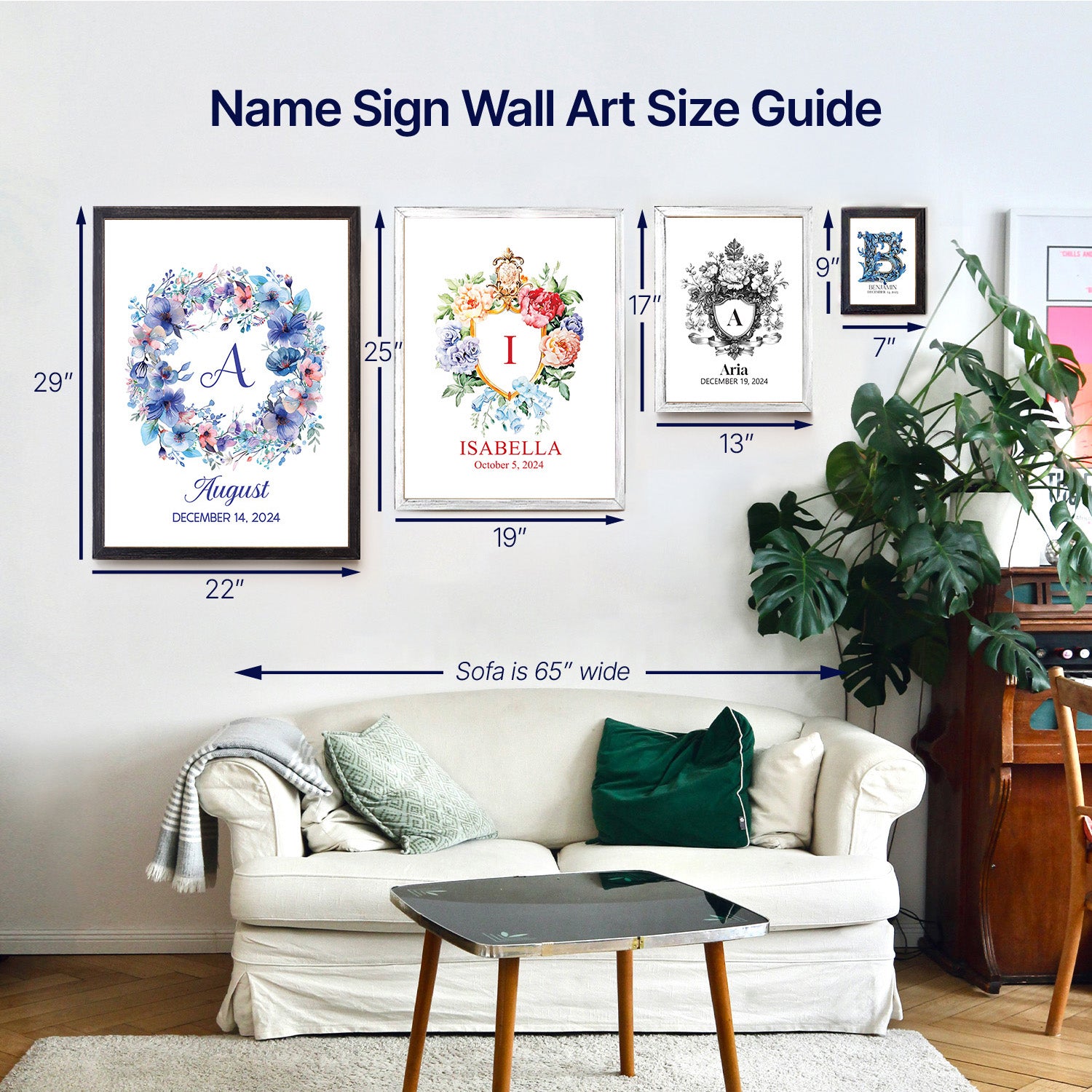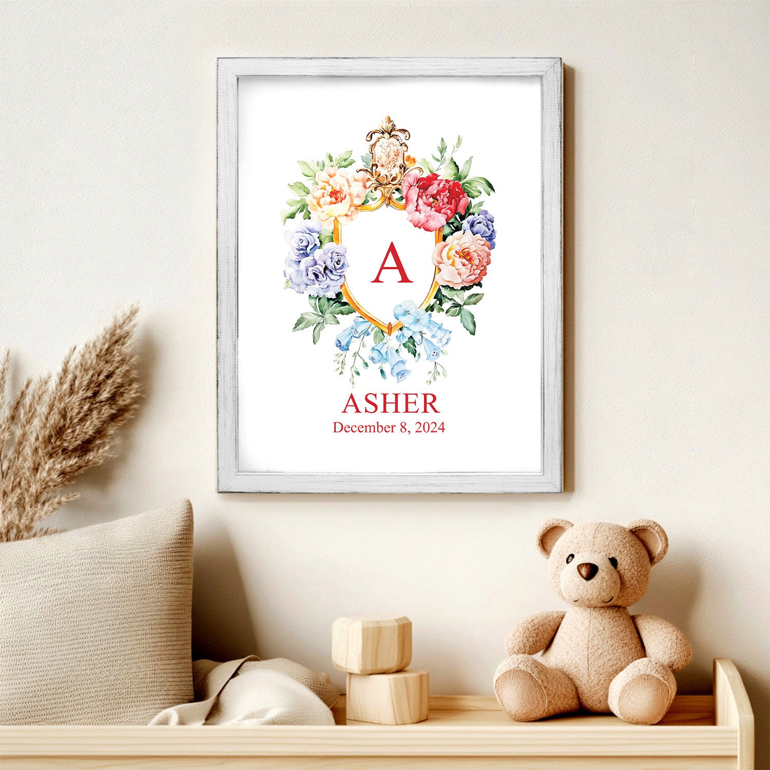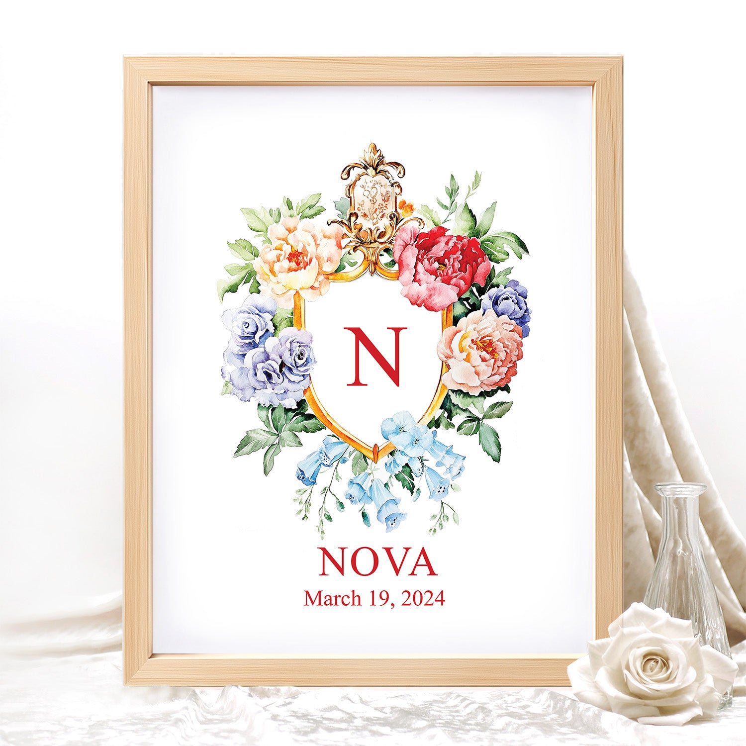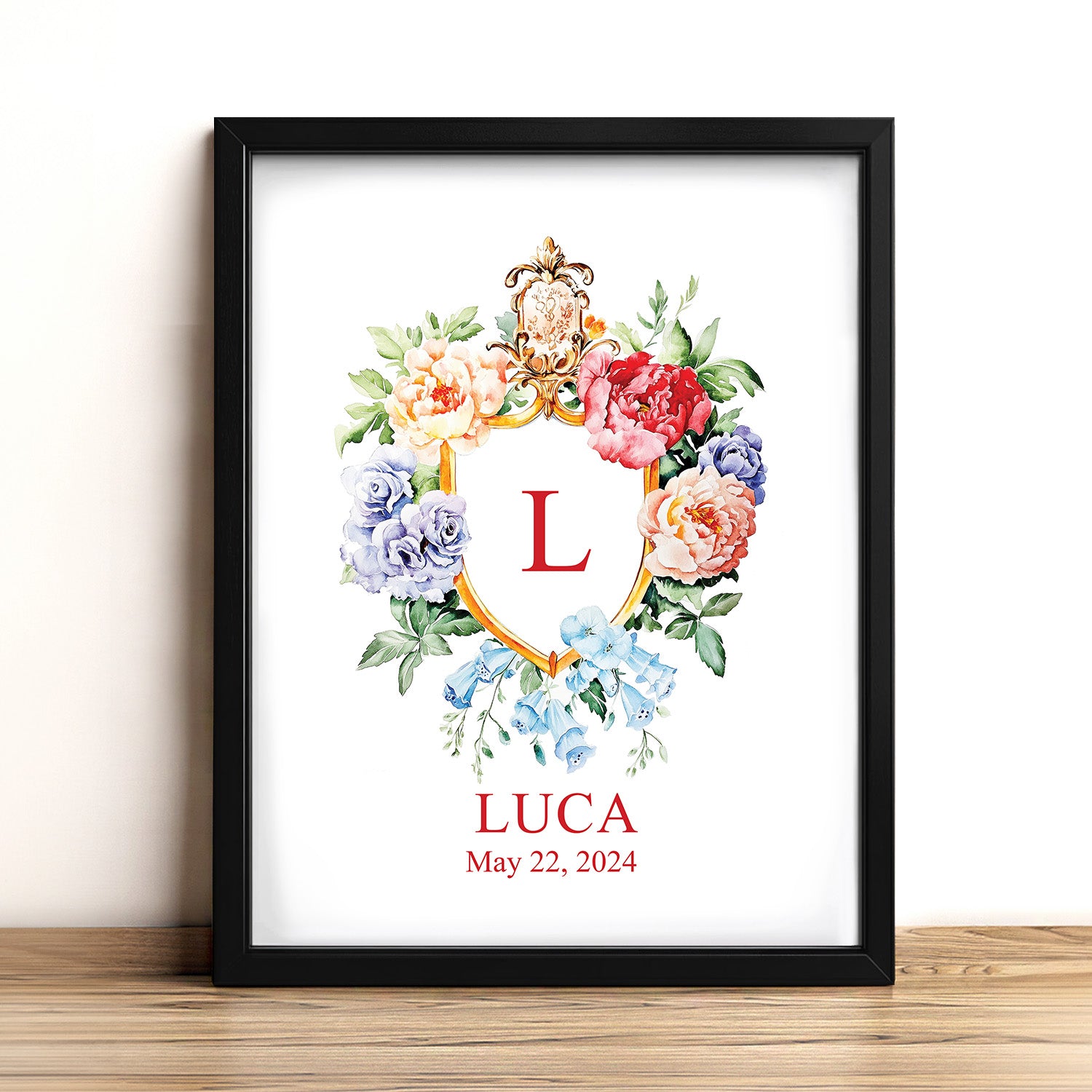 Floral Custom Name Sign Framed Wall Art