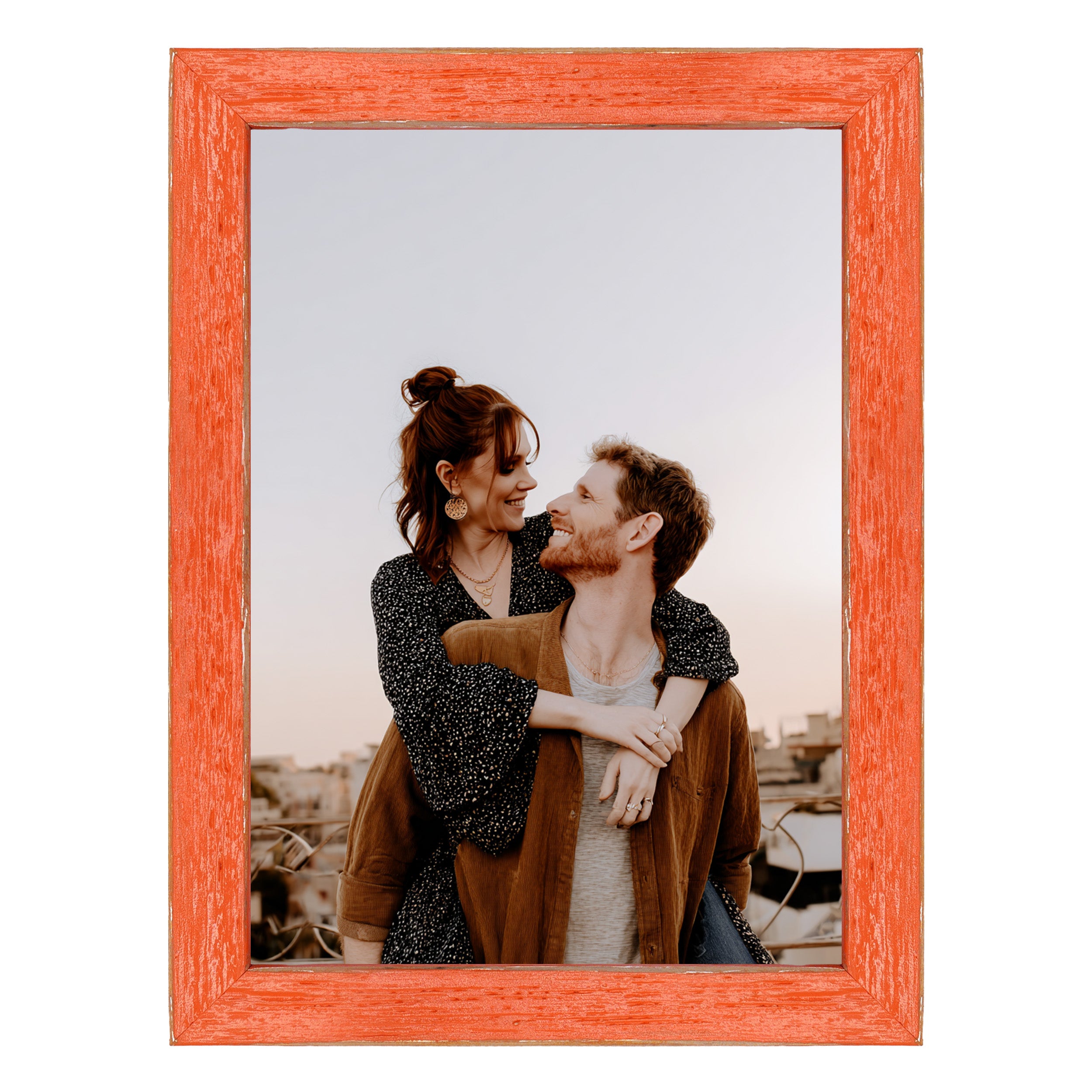 Hand Painted Orange Wood Picture Frame