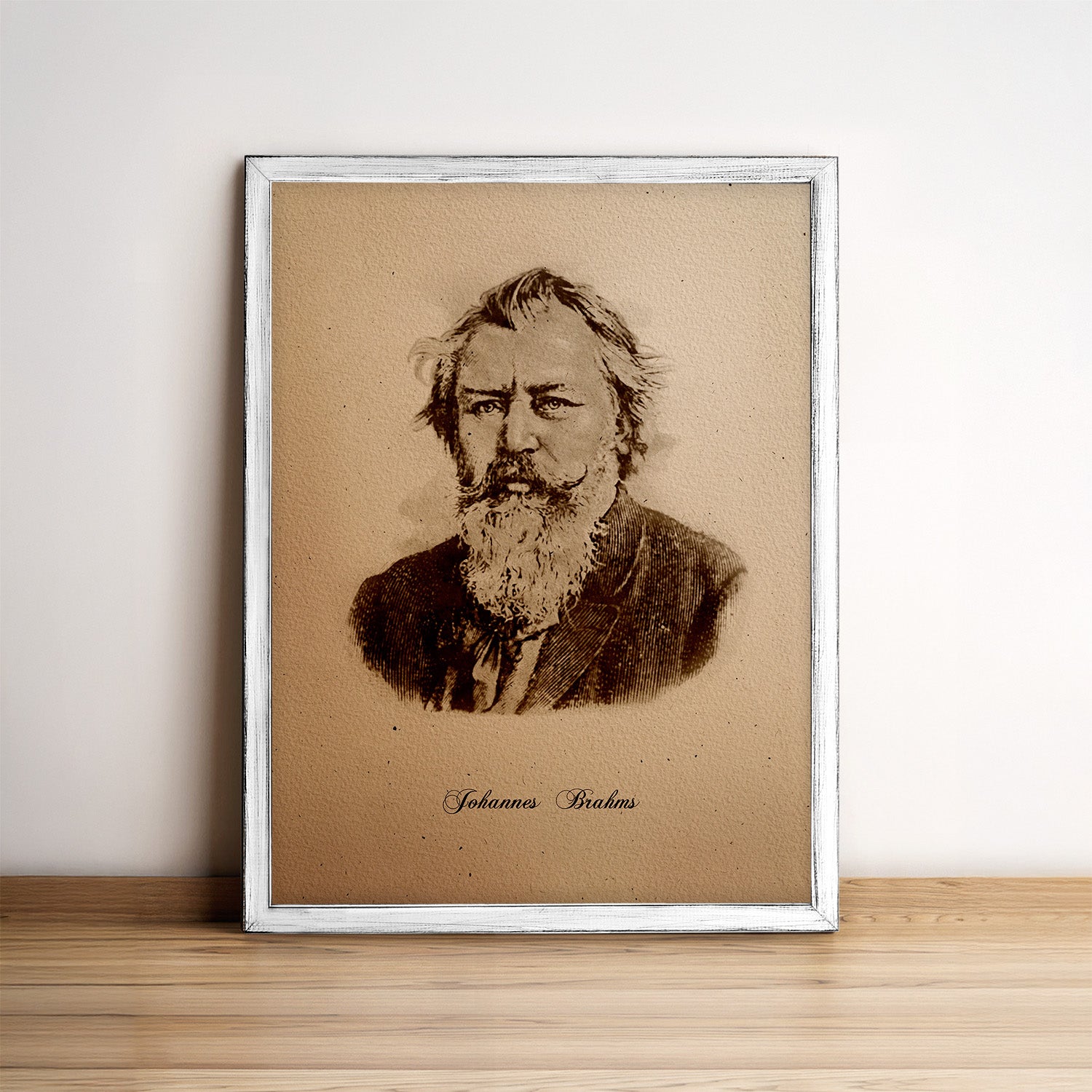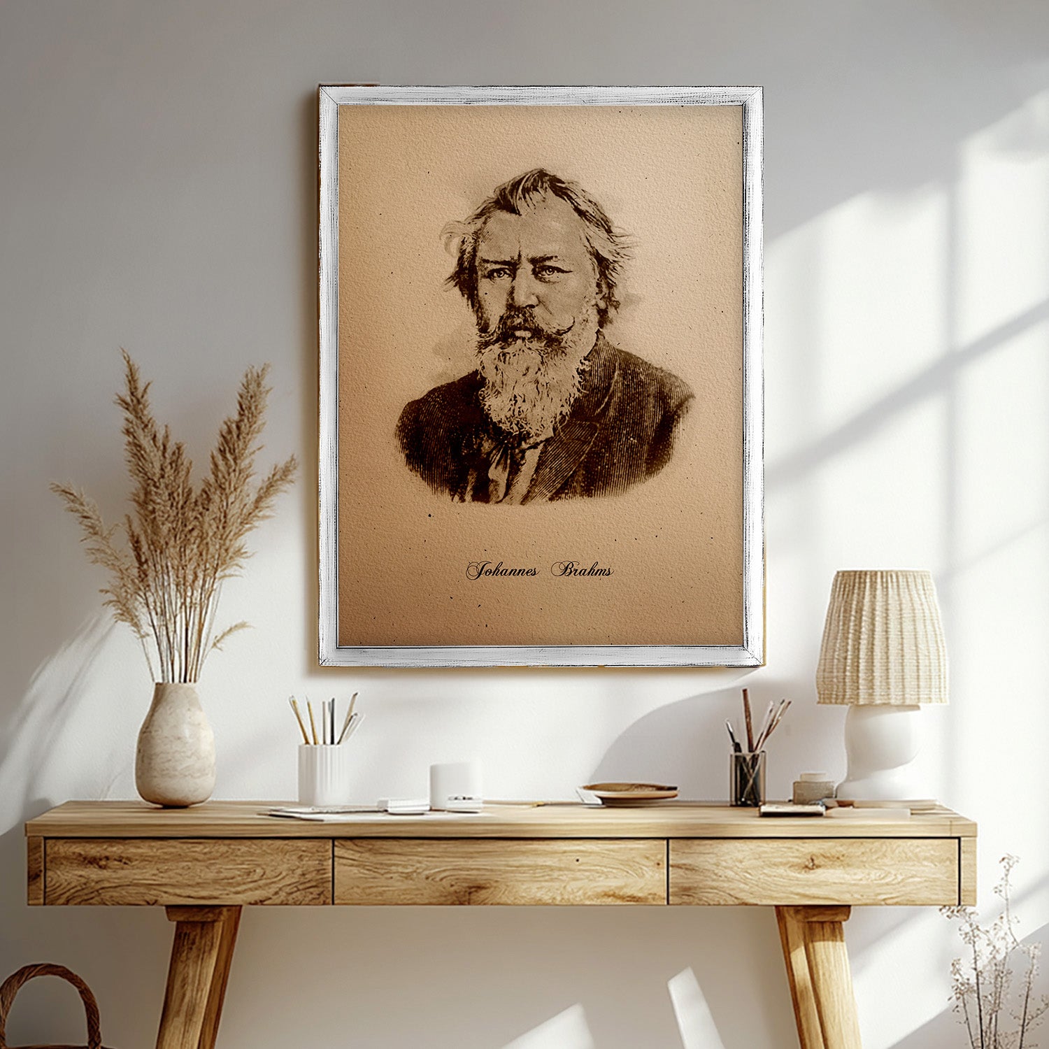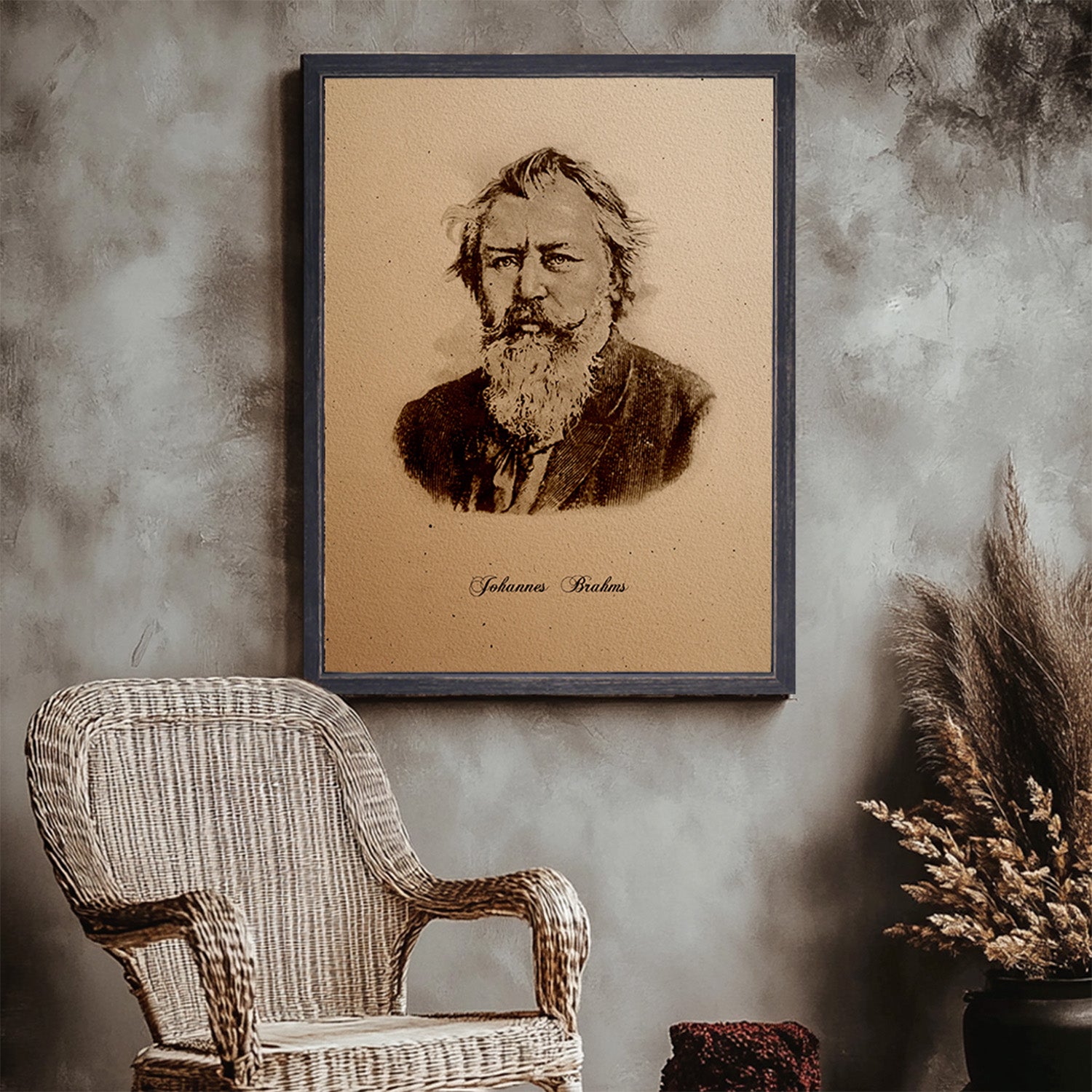 Johannes Brahms Portrait Wood Print Framed Wall Art