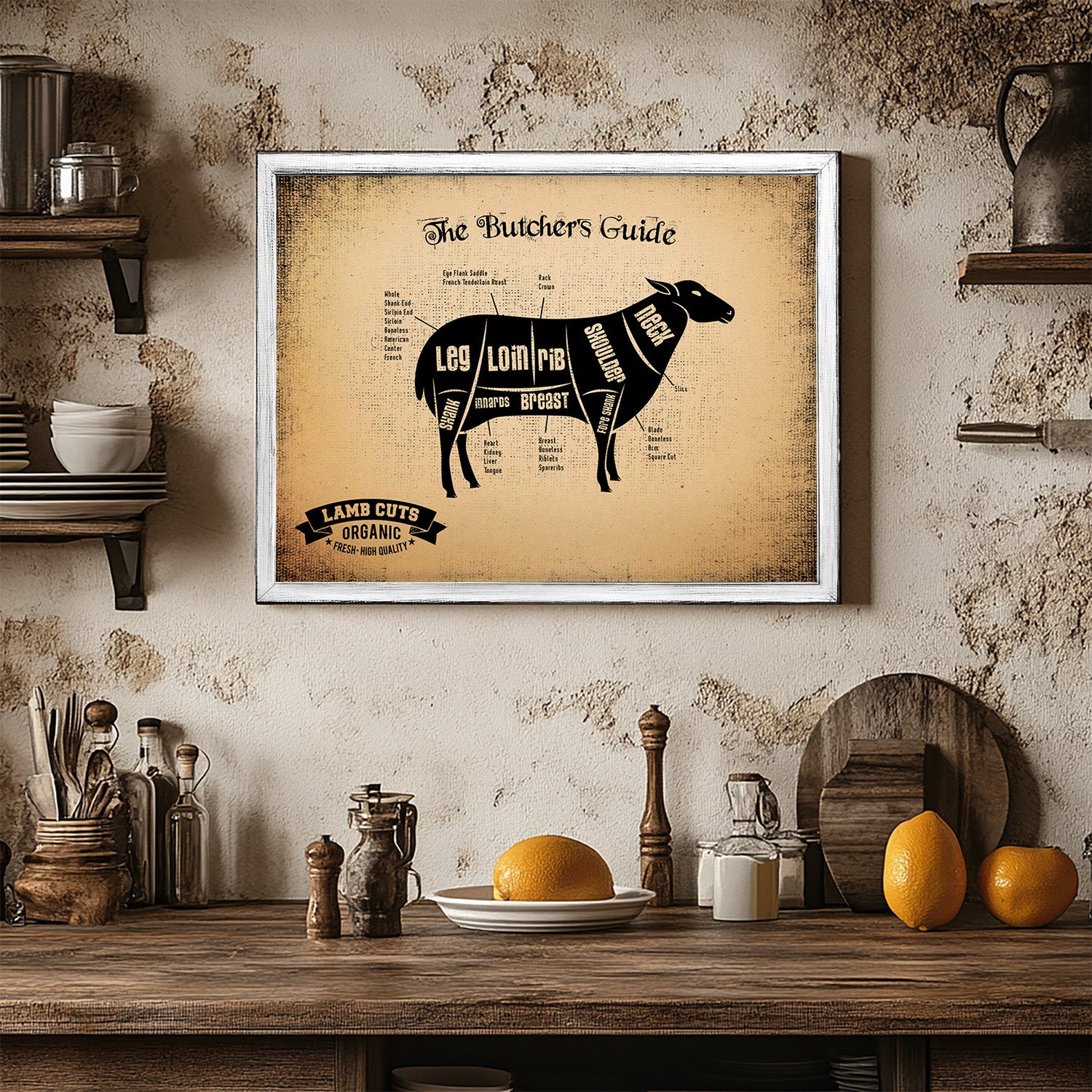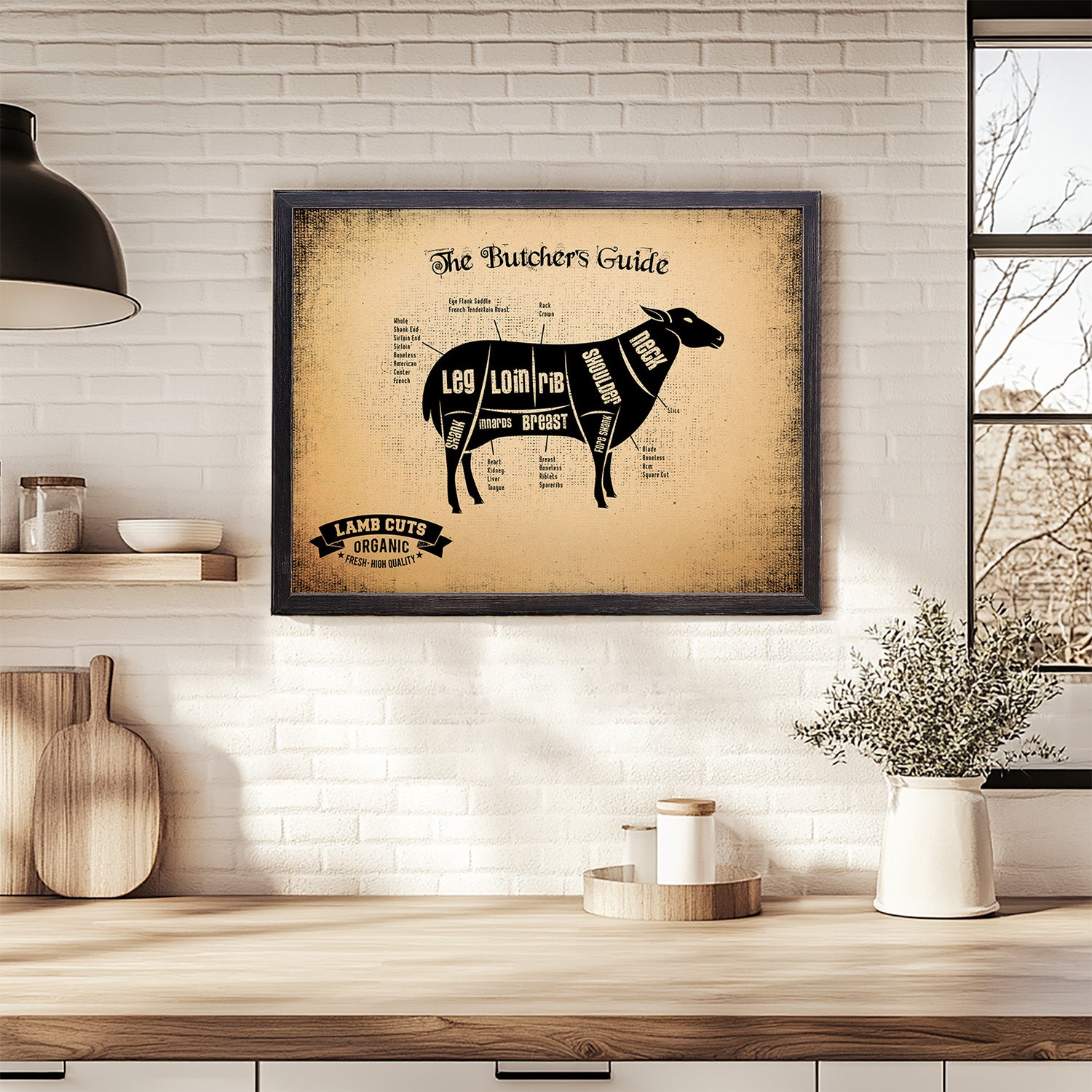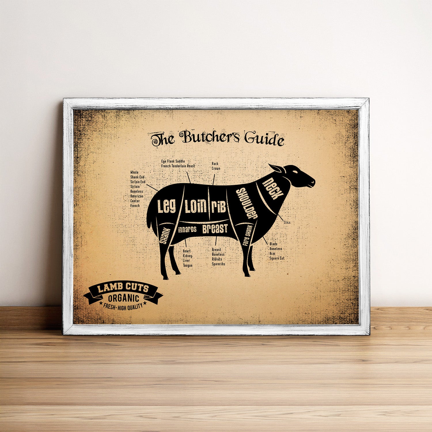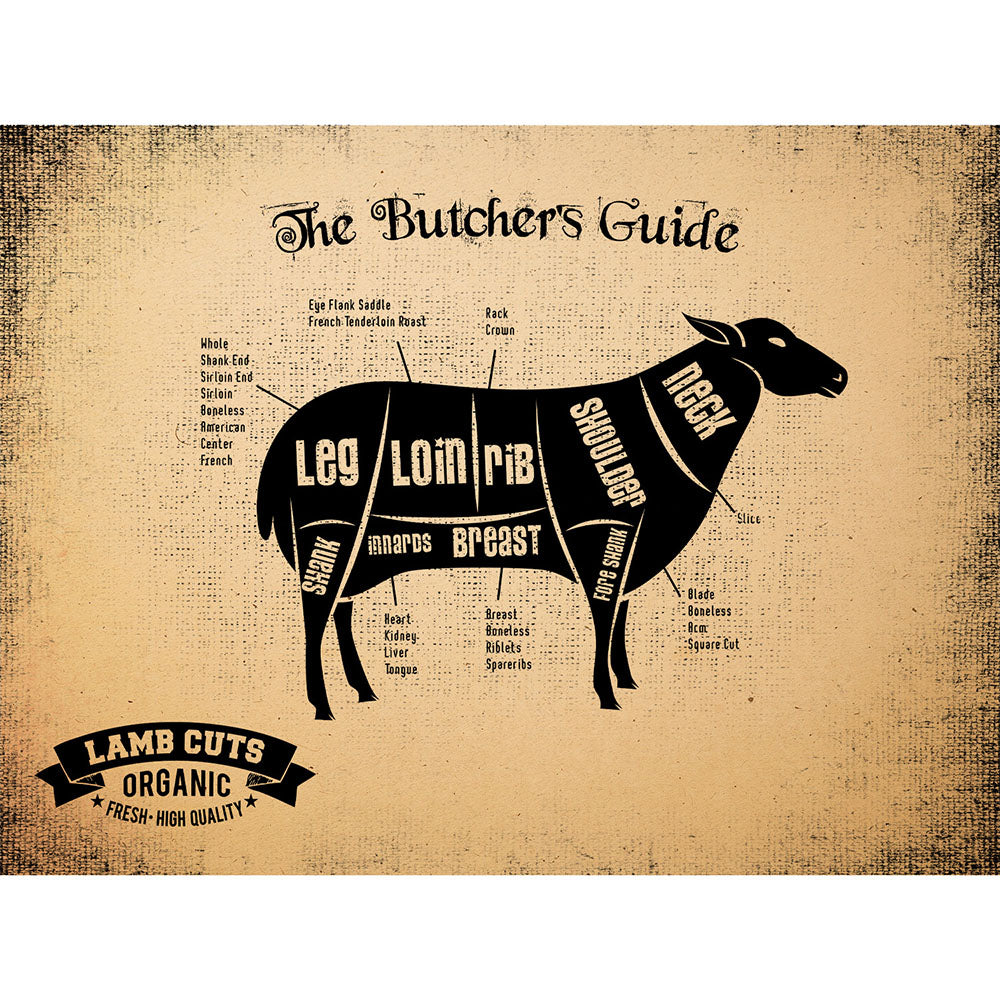 Lamb Cuts Butcher Guide Wood Sign Framed Wall Art