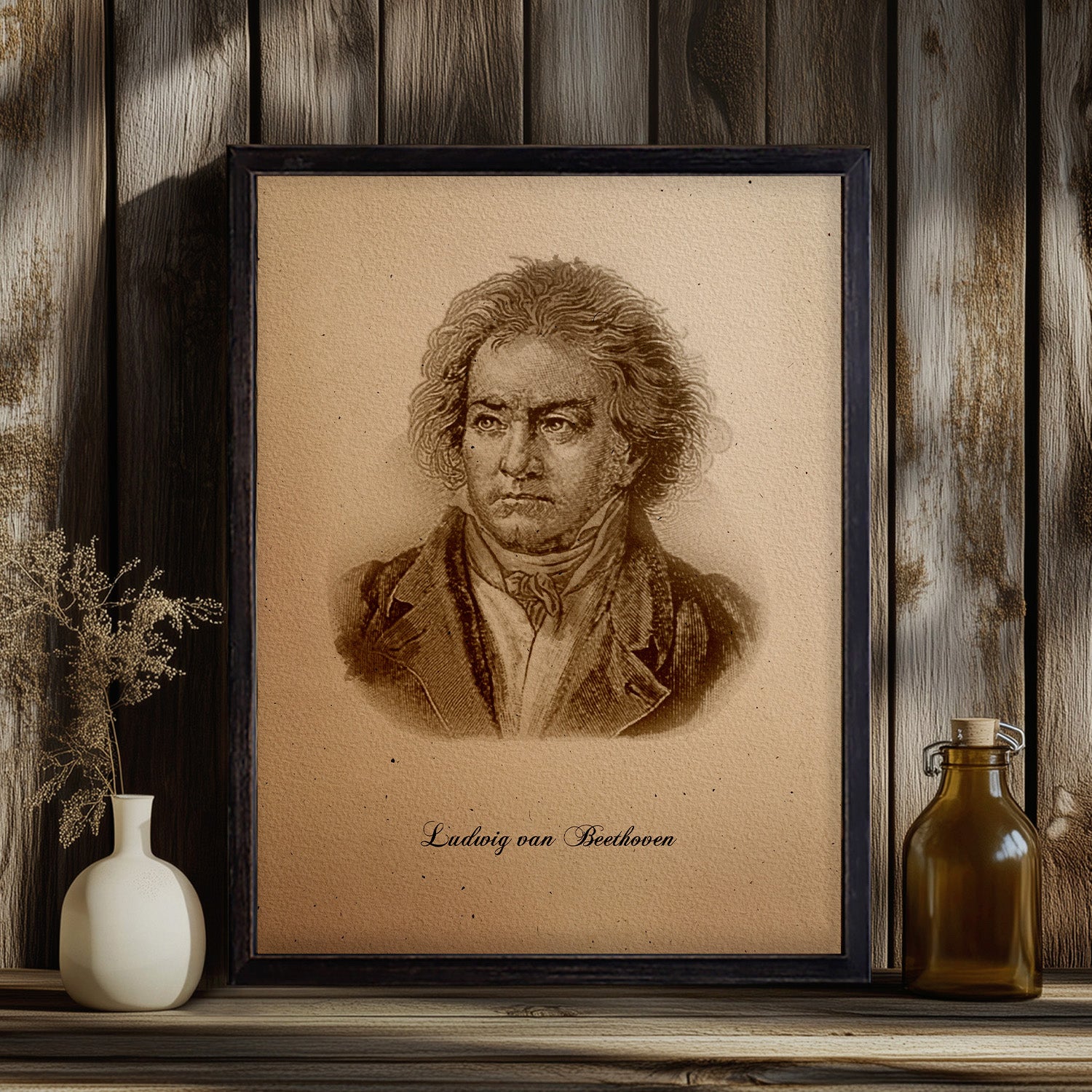 Ludwig Van Beethoven Portrait Wood Print Framed Wall Art