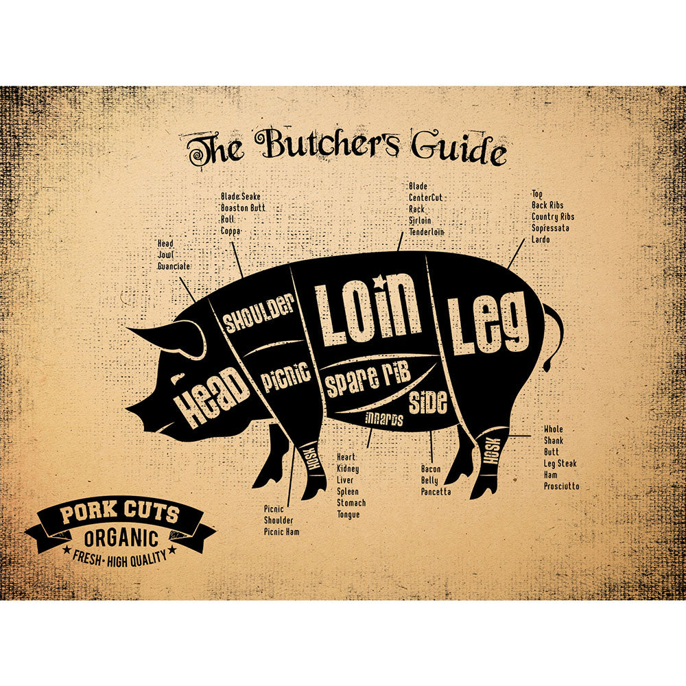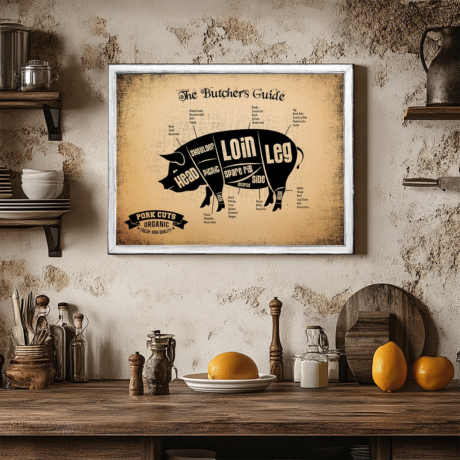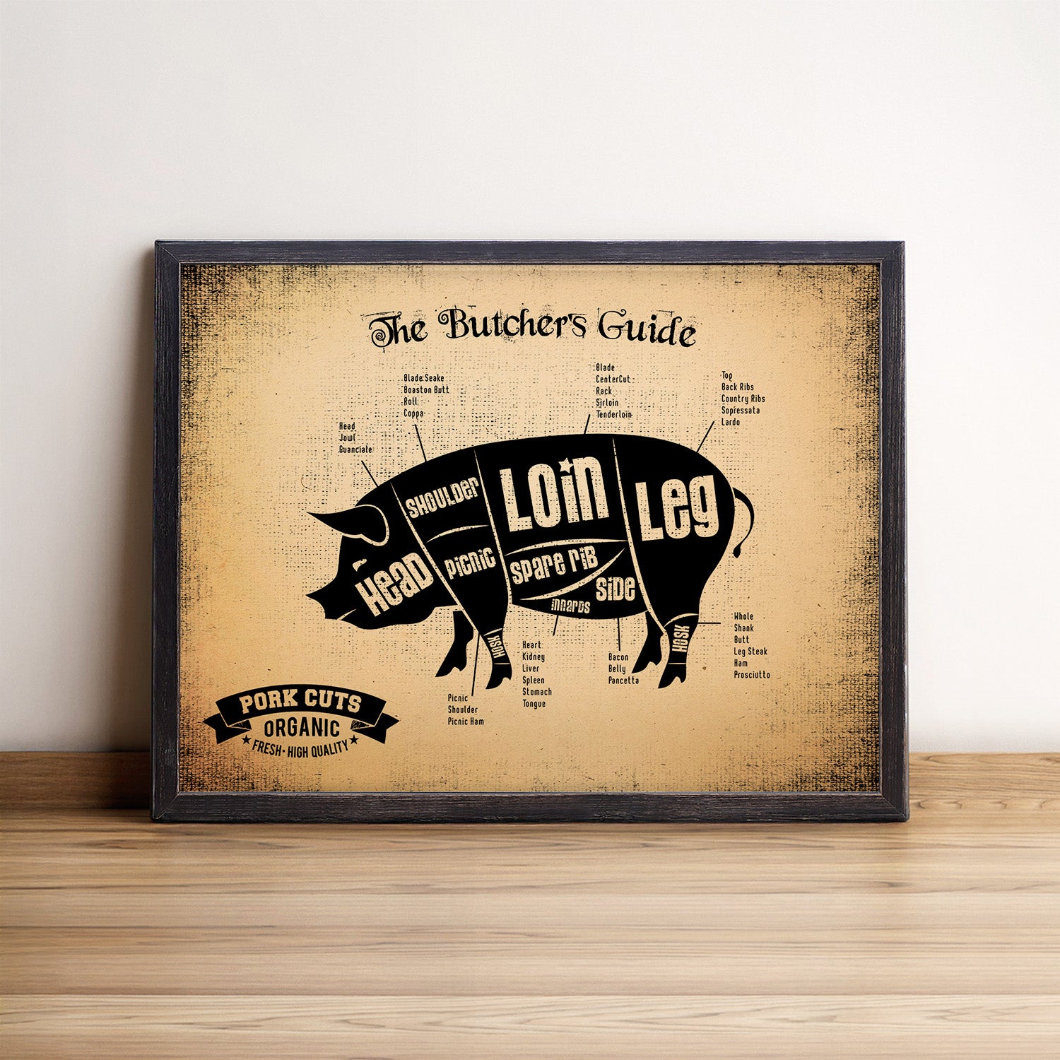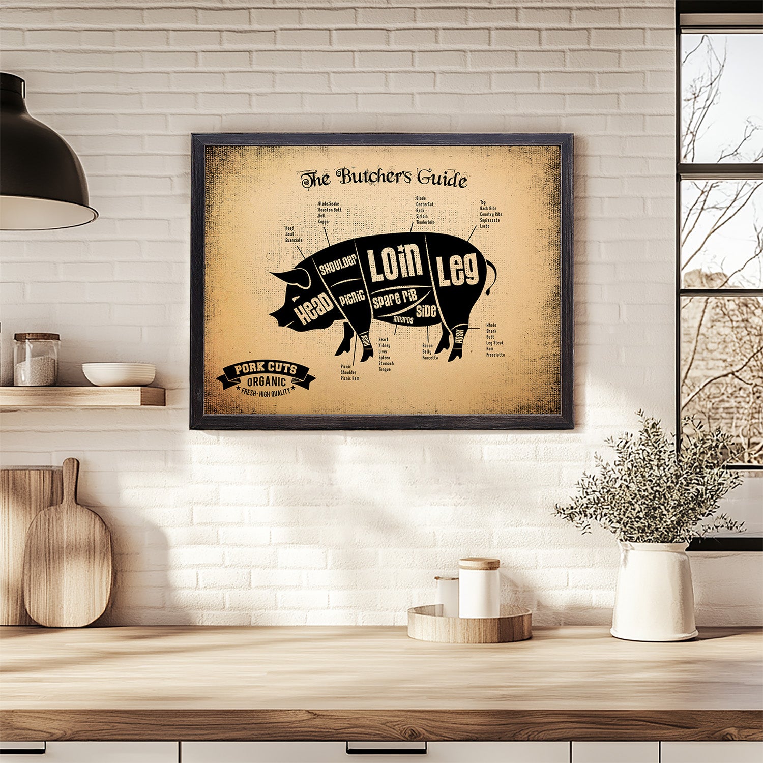 Pork Cuts Butcher Guide Wood Sign Framed Wall Art