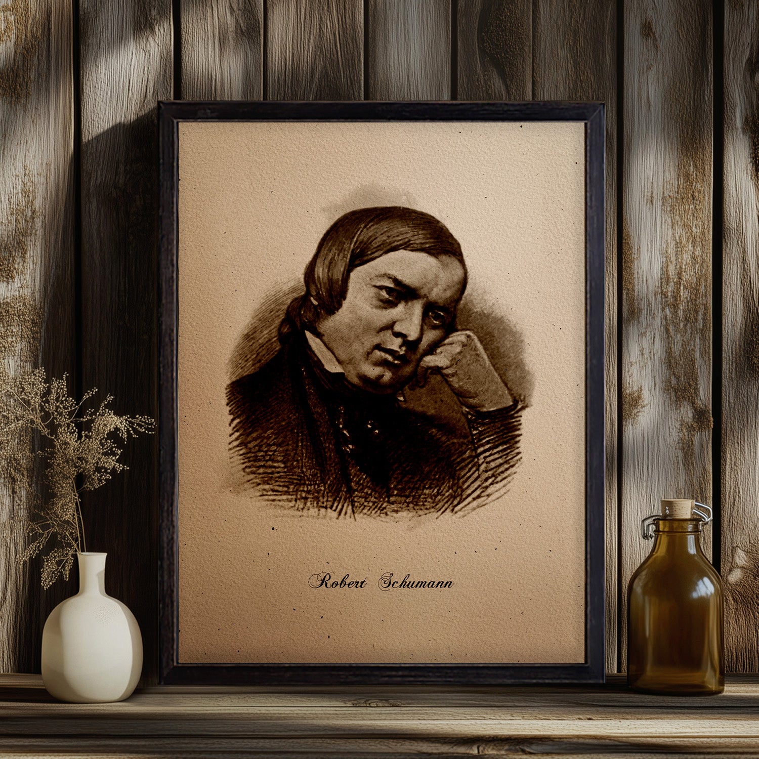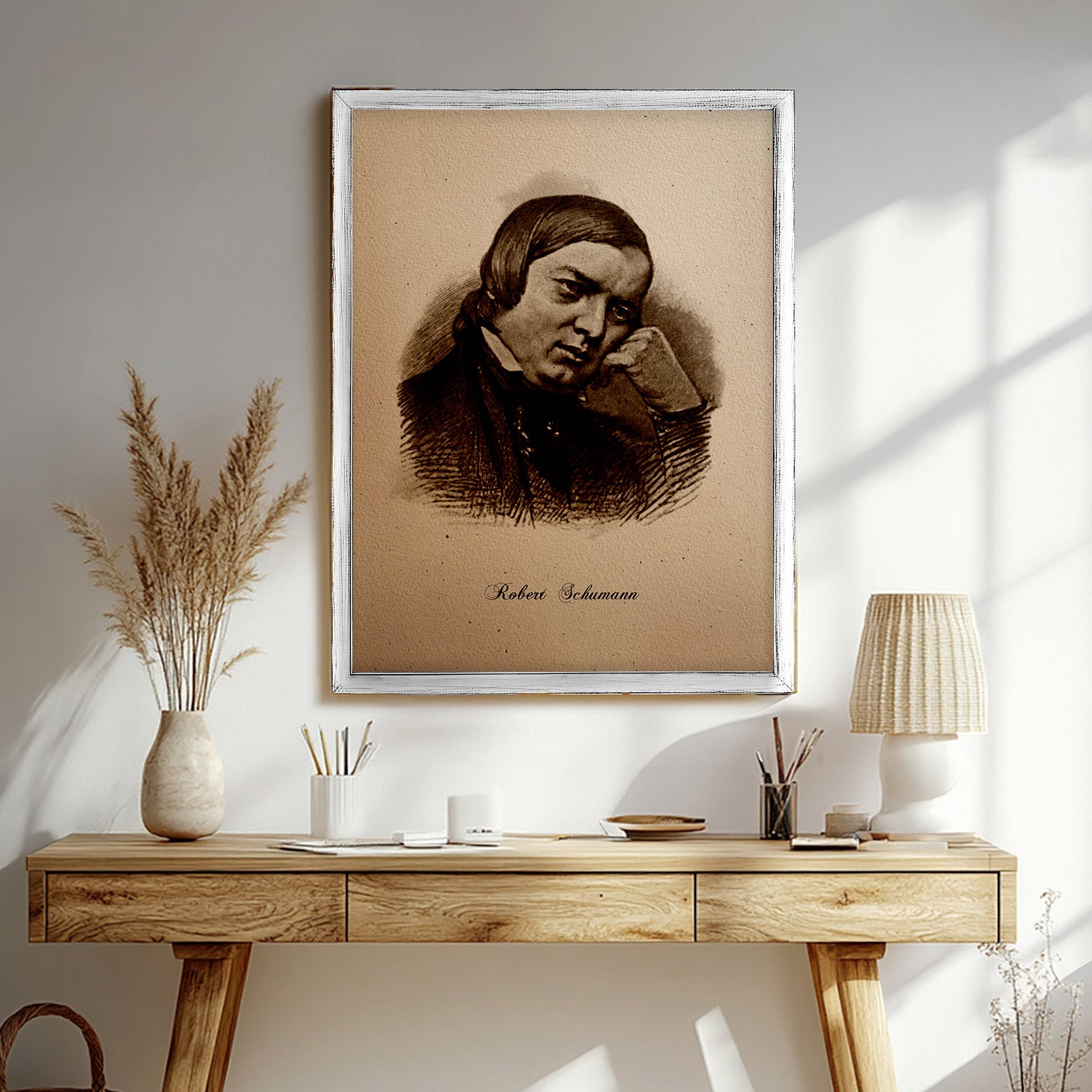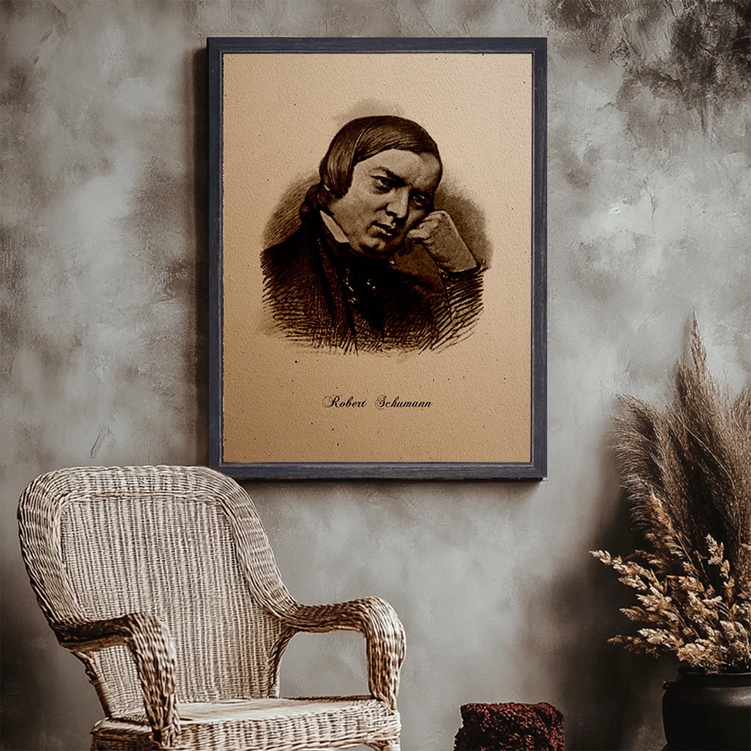 Robert Schumann Portrait Wood Print Framed Wall Art