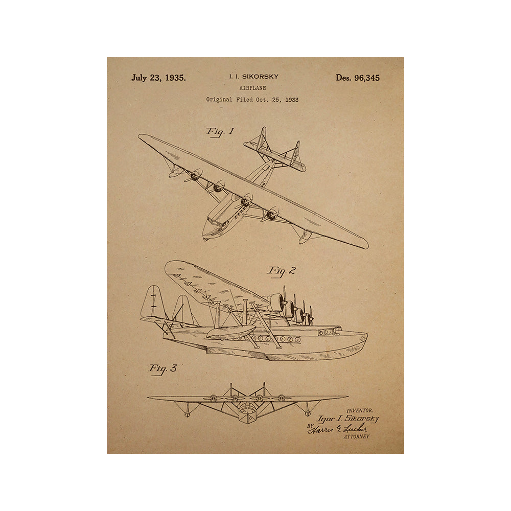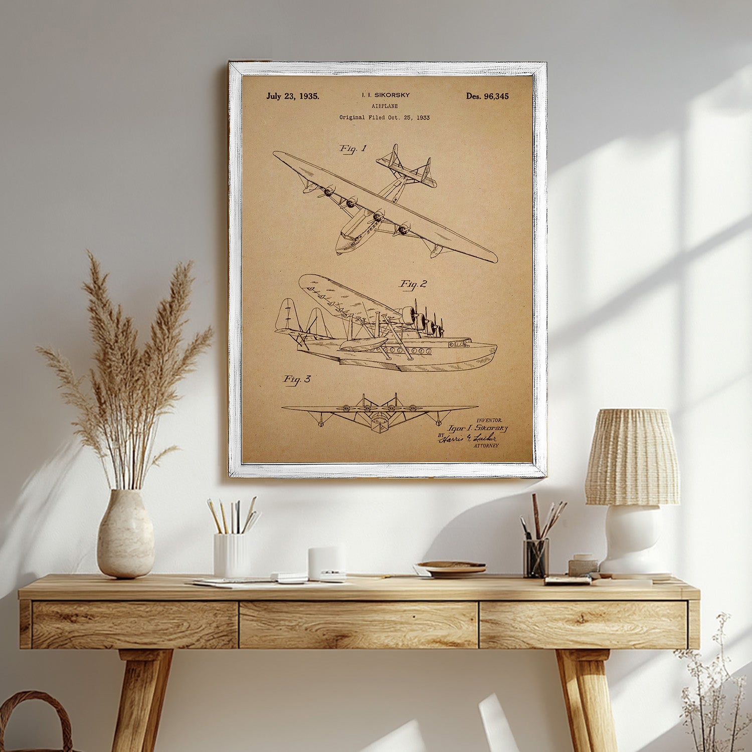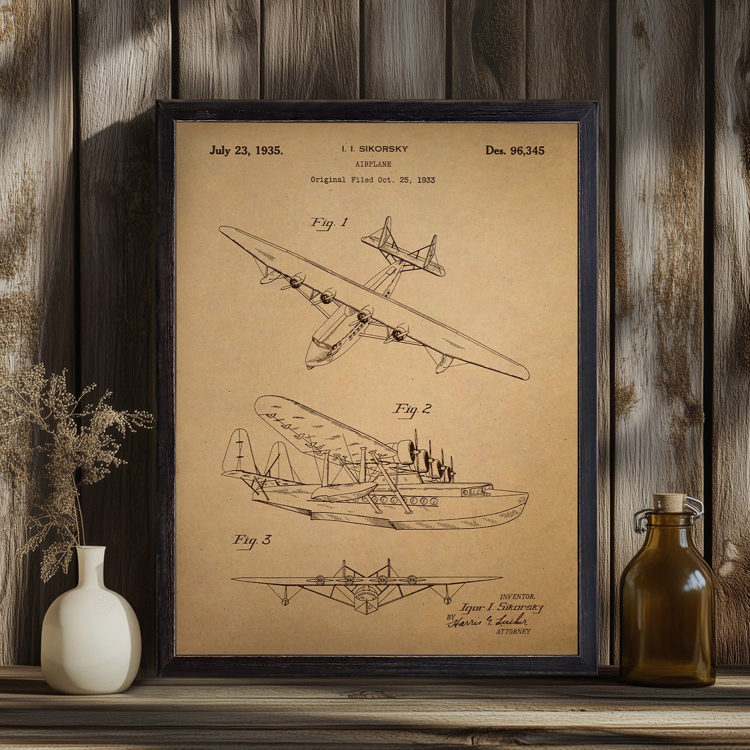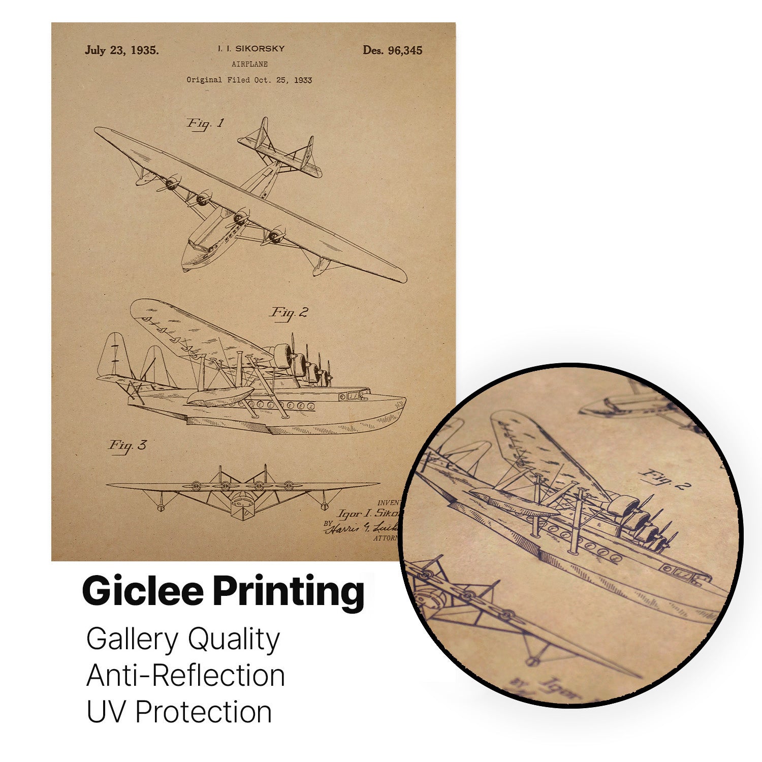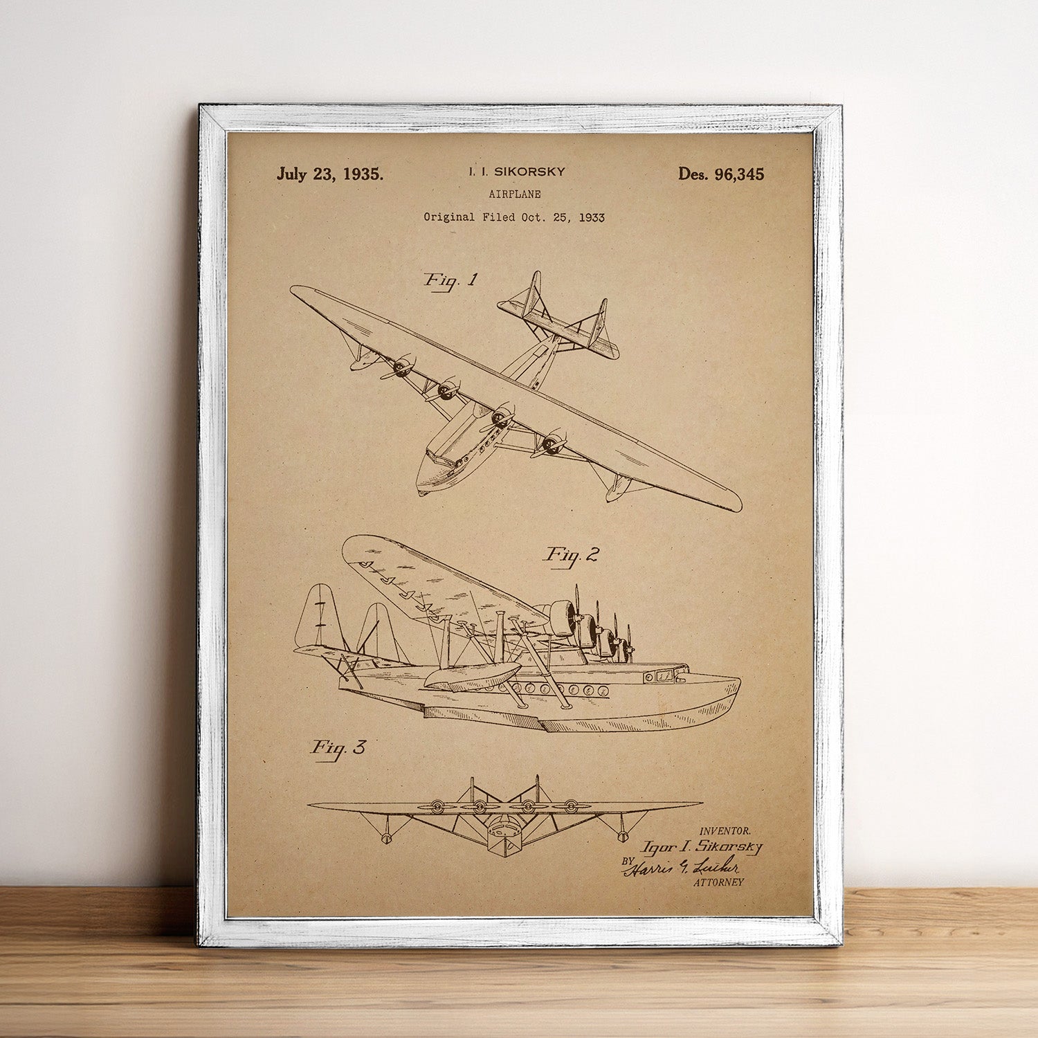 Sikorsky Airplane Patent Wood Print Framed Wall Art