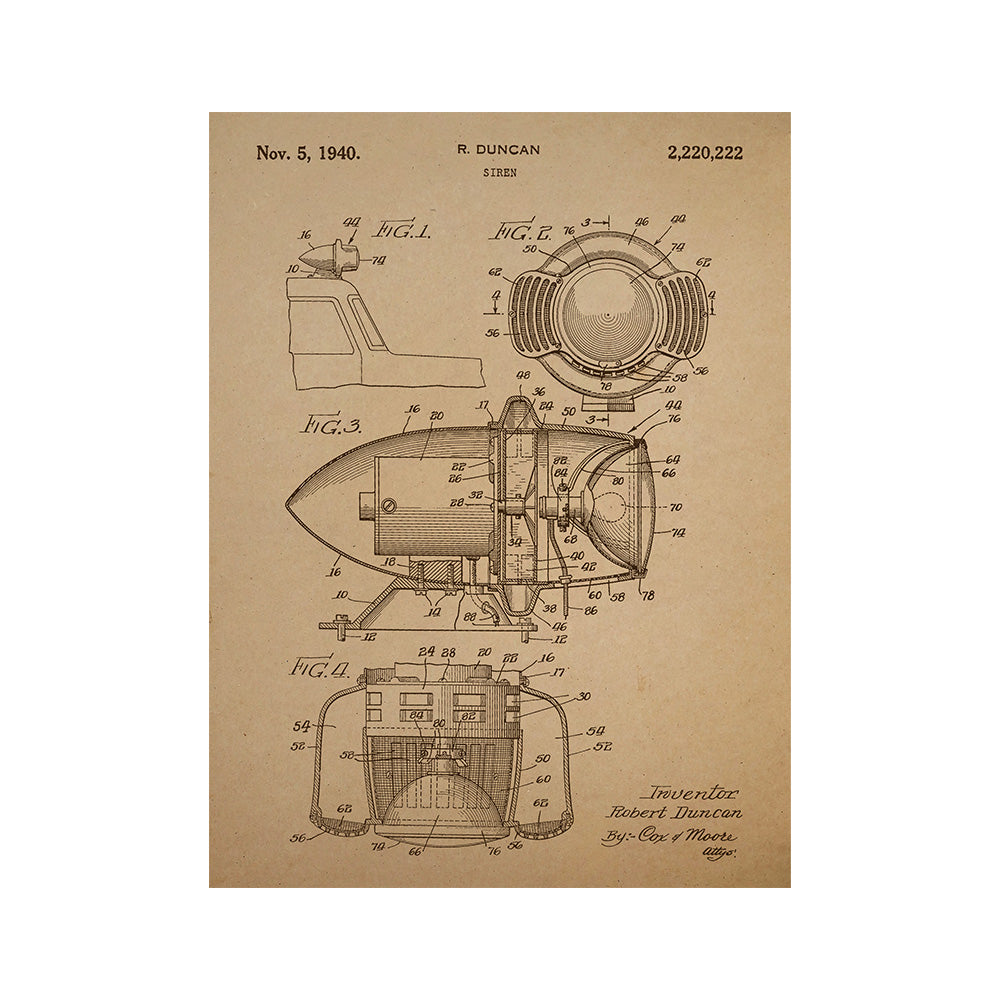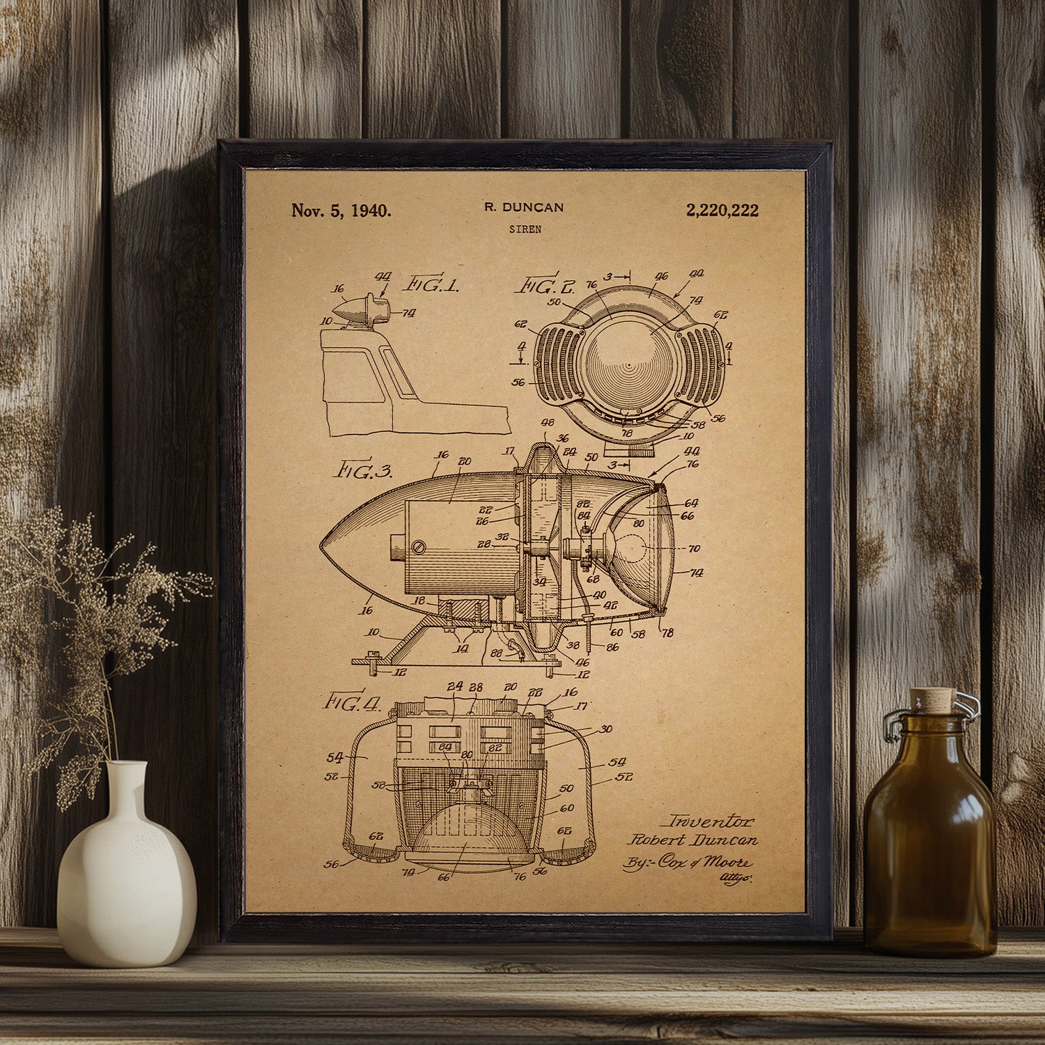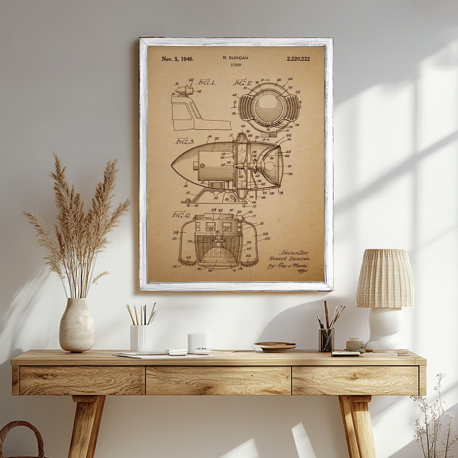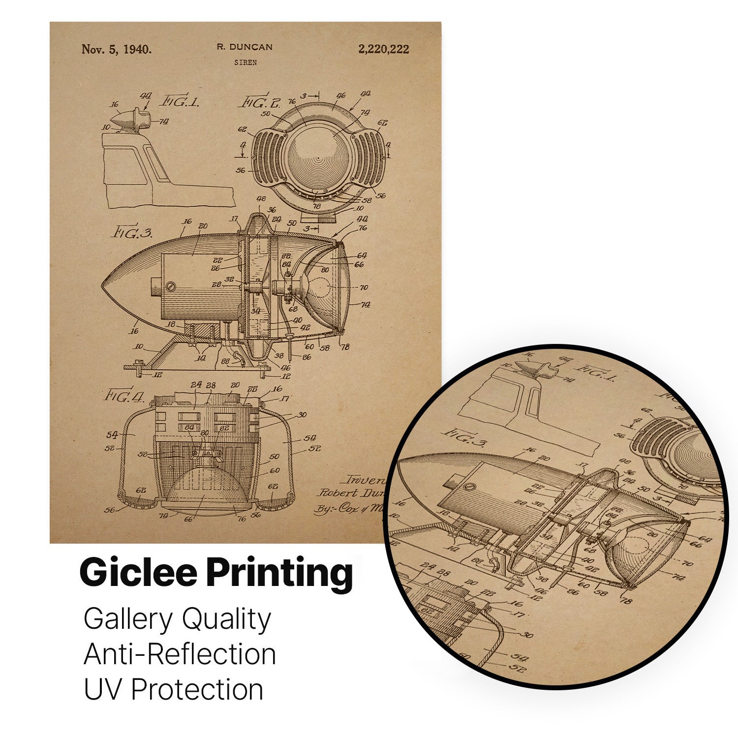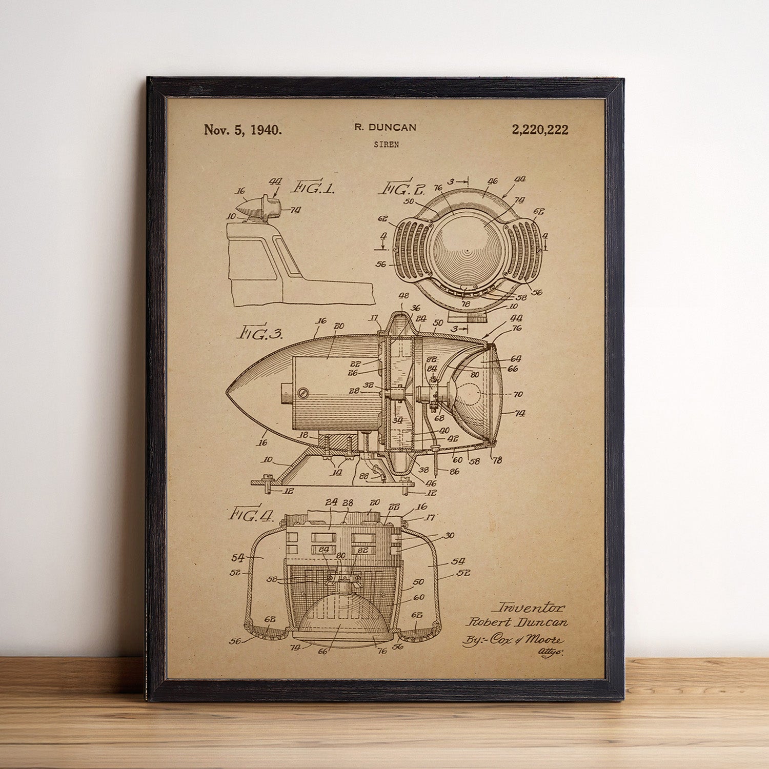 Siren Blueprint Patent Wood Print Framed Wall Art