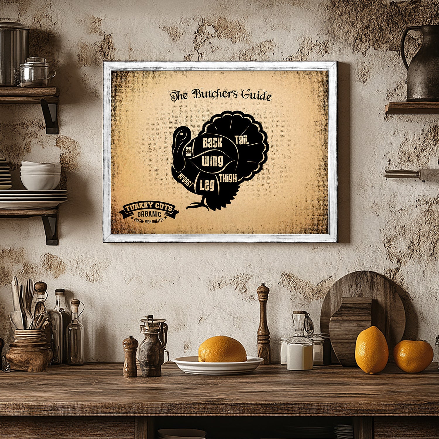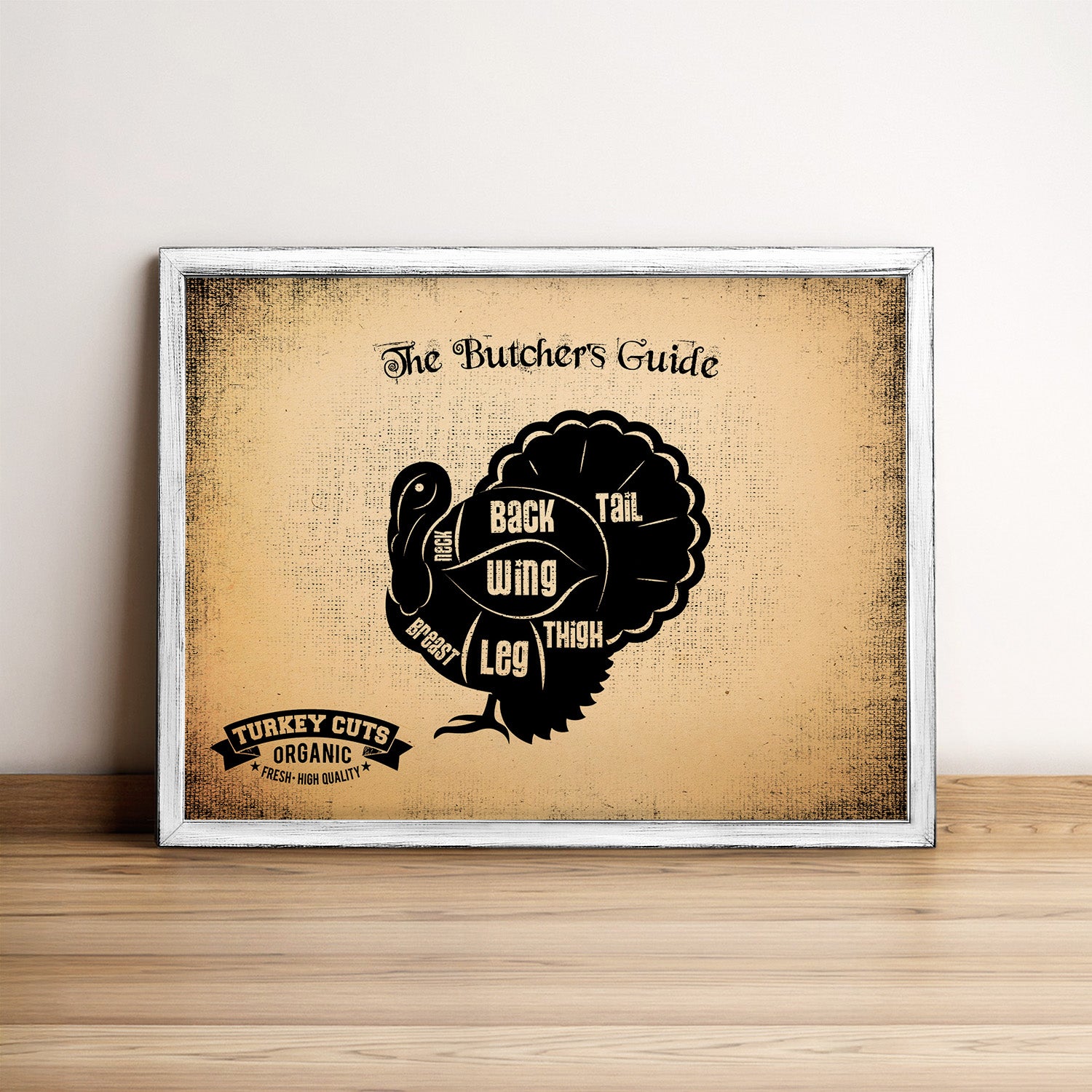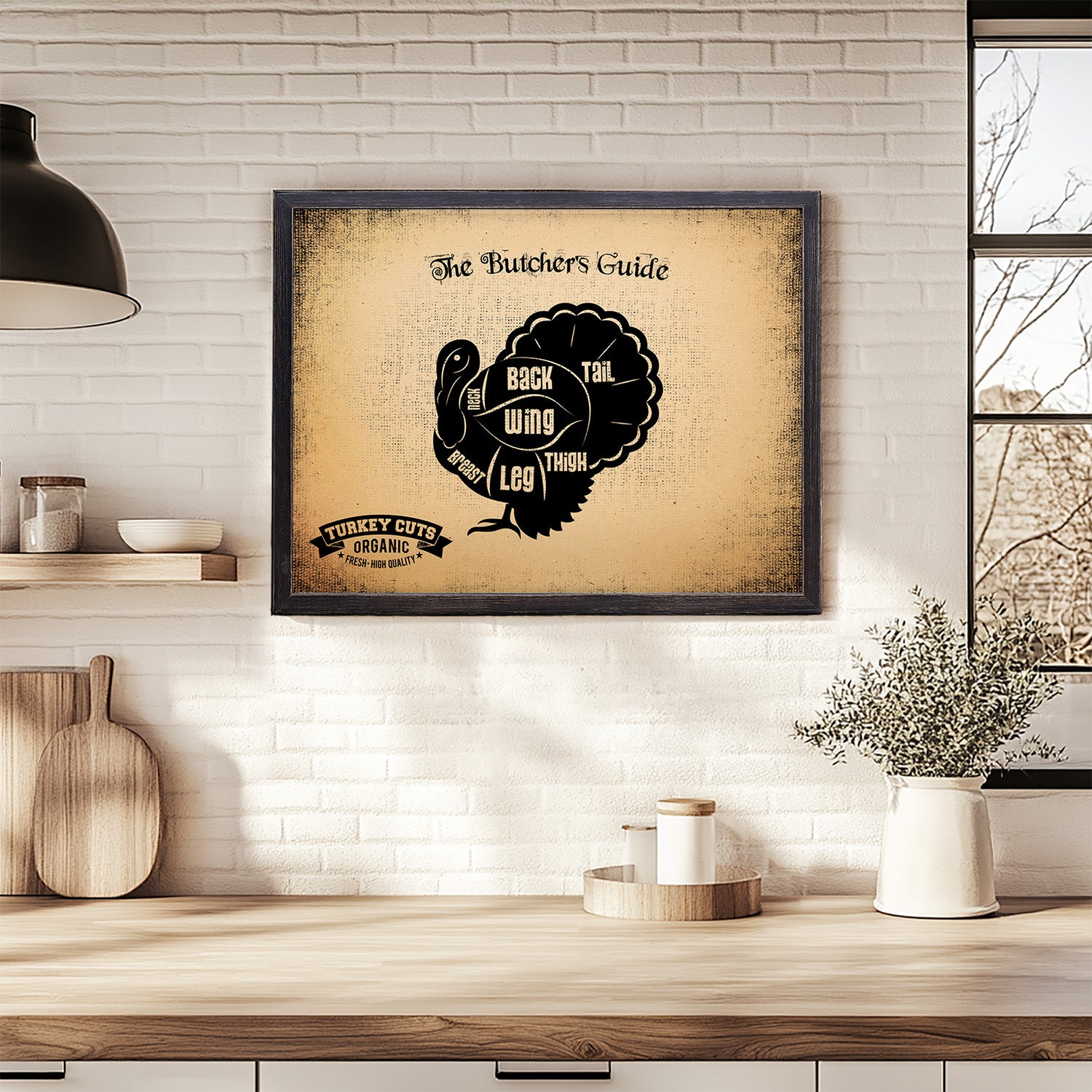 Turkey Cuts Butcher Guide Wood Sign Framed Wall Art